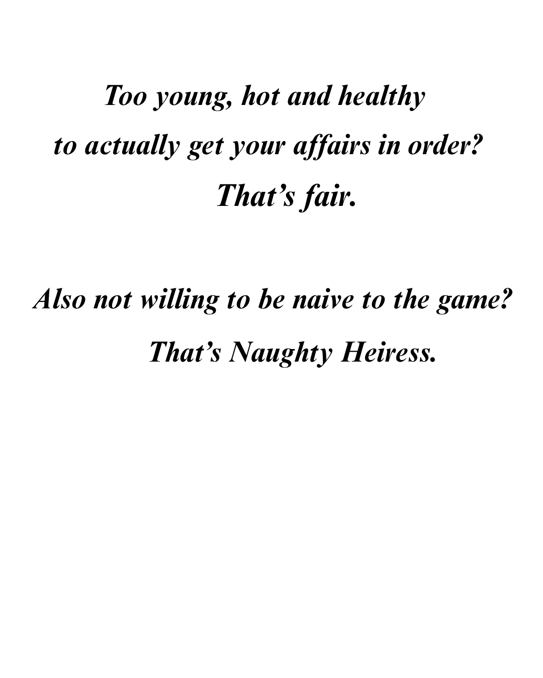 We're Naughty Heiress. Not attorneys. Not legal advisors. Just the ones making sure you know how this works before you need to.